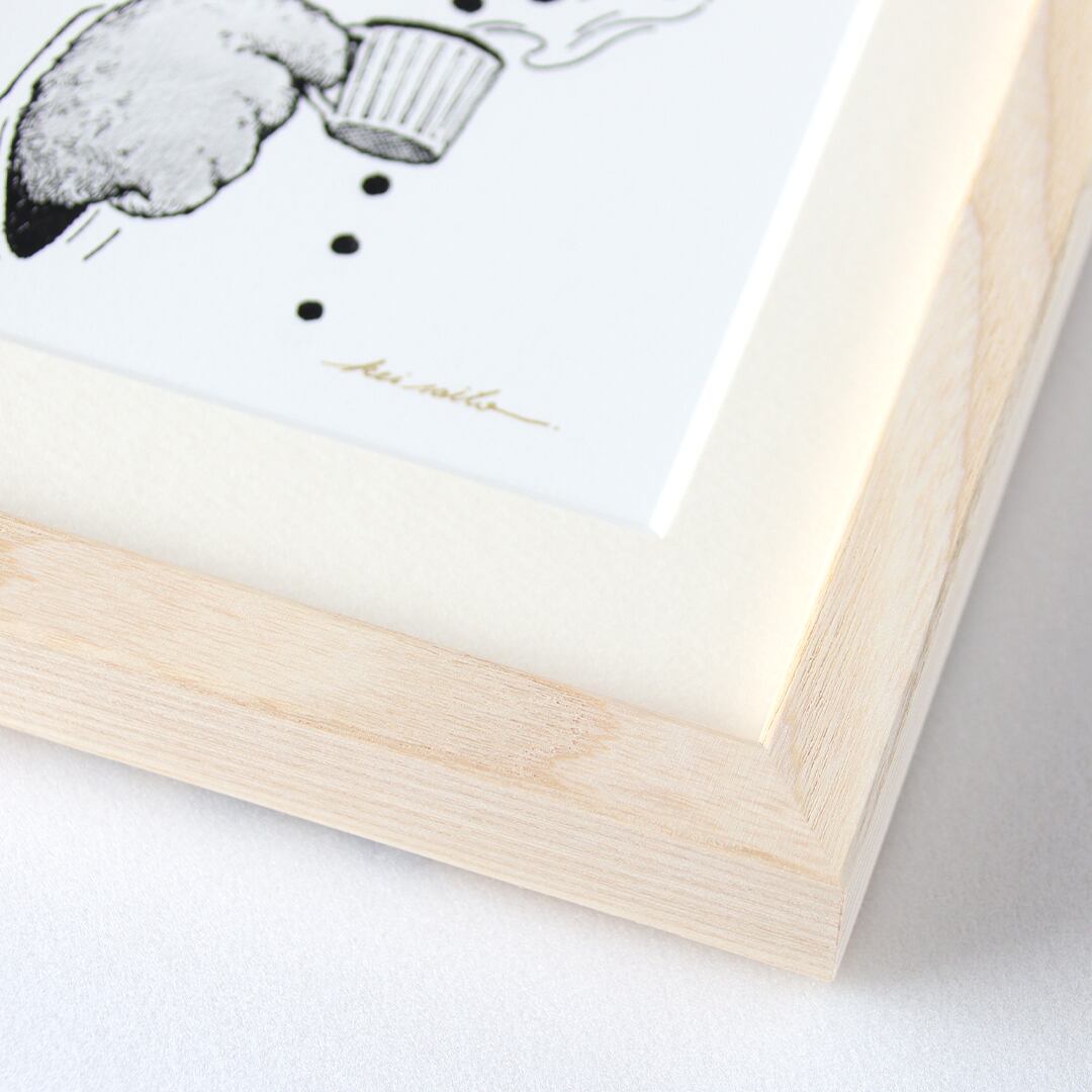 ・商品画像のように、無垢の額縁に入れてお届けいたします。(無塗装で木の素材を生かしたフレームとなるため、 商品によって色味や木目模様の差異がございます。)