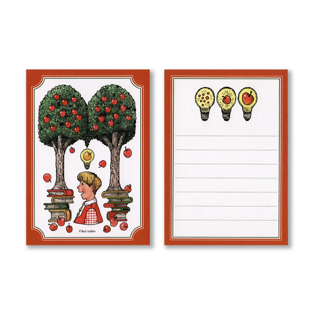 『アイデアが浮かんだ男の子』がモチーフのミニカードセットです。厚めのしっかりとした紙に印刷しています。裏は罫線が入っているので、ちょっとしたメッセージを書く一筆箋として、プレゼントに添えるカードなどにお使いいただけます。