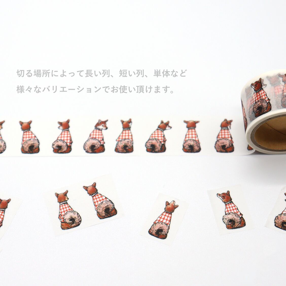 柴犬の後ろ姿が並んだ、シンプルなマスキングテープです。