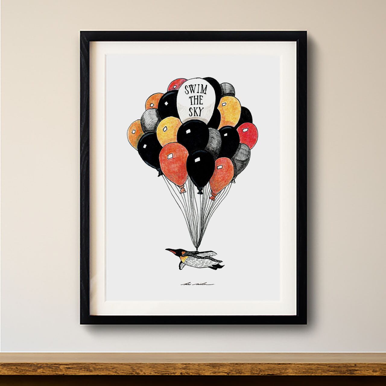 No.27 アートポスター《 空飛ぶペンギン 》