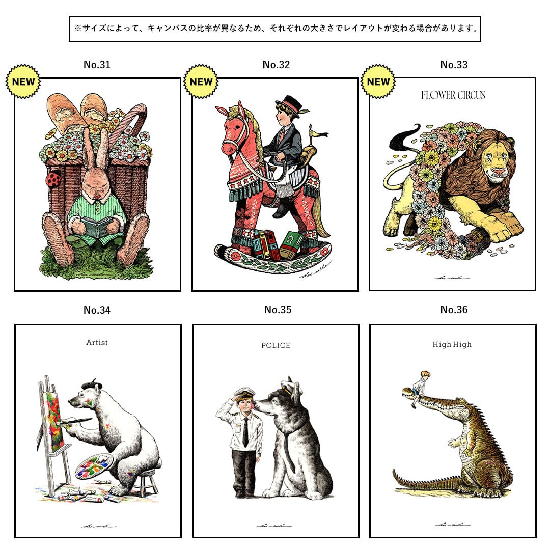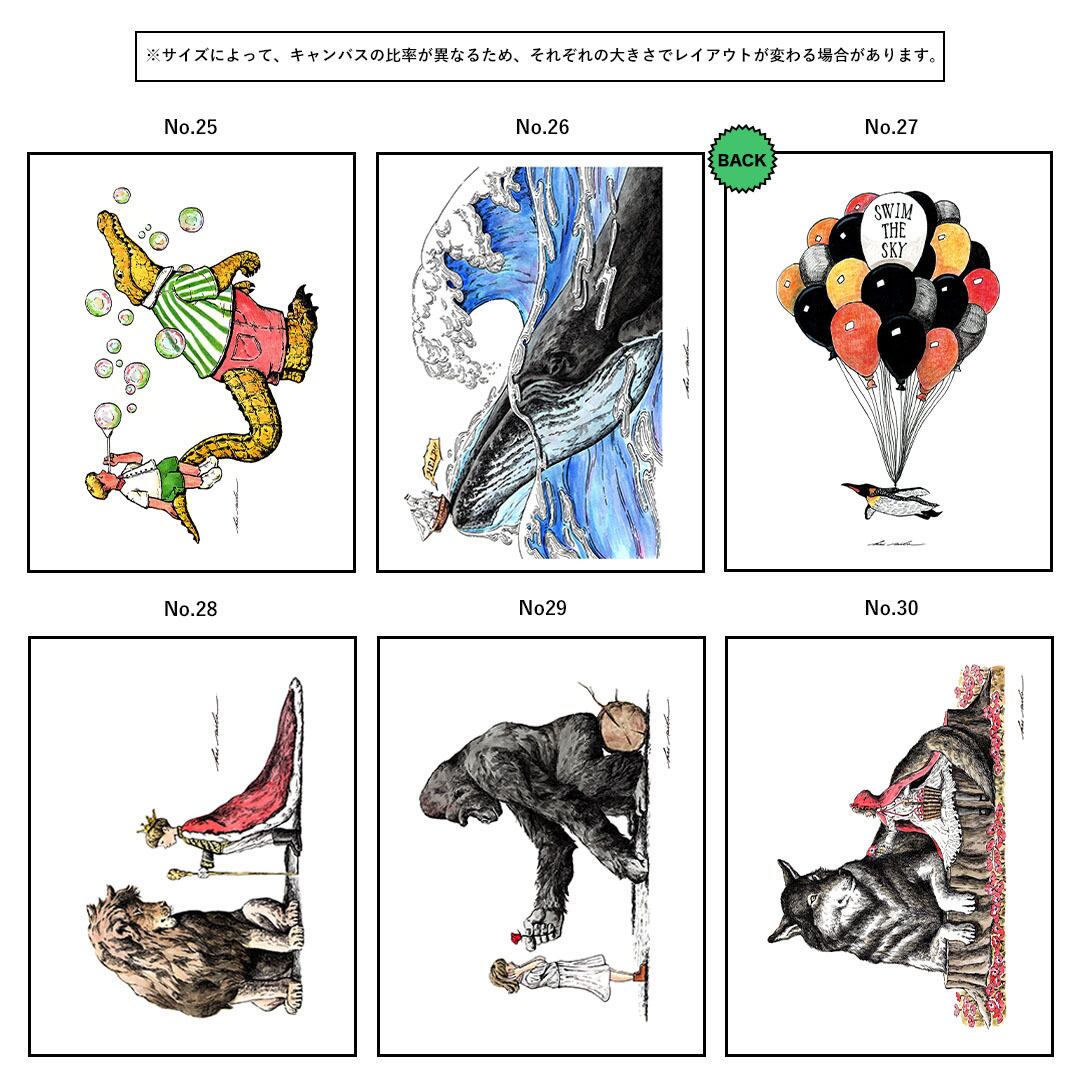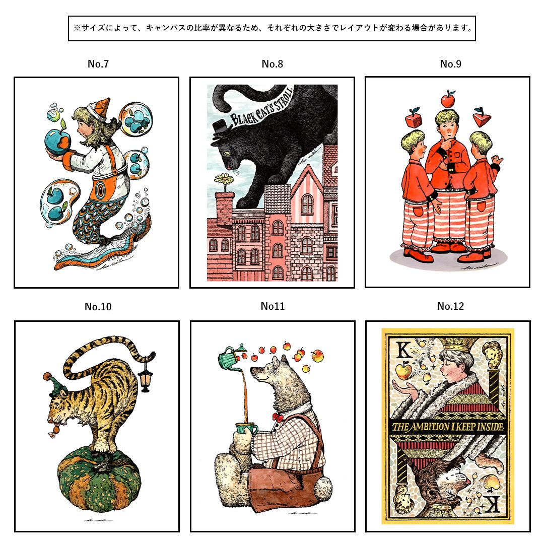 商品画像のカタログに記載されたイラストの番号をご確認頂き、オプションから【キャンバスサイズ】と【イラスト番号】を忘れずにご選択・ご入力をお願いいたします。